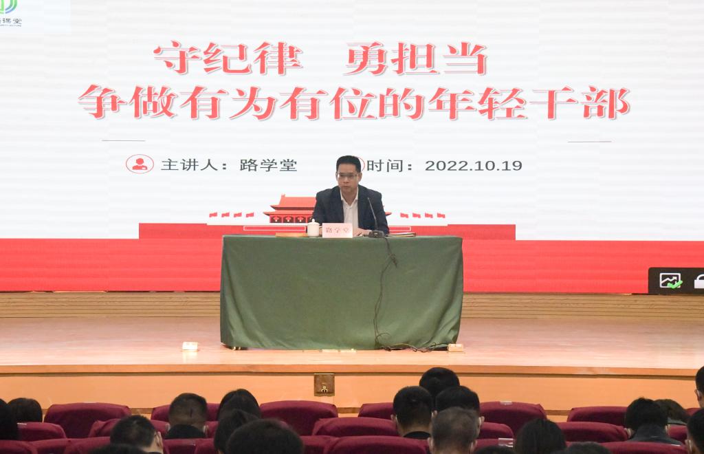 路学堂以《守纪律、勇担当,争做有为有位的年轻干部》为题讲授“青廉课堂”第一课,纪委副书记苏斌主持。