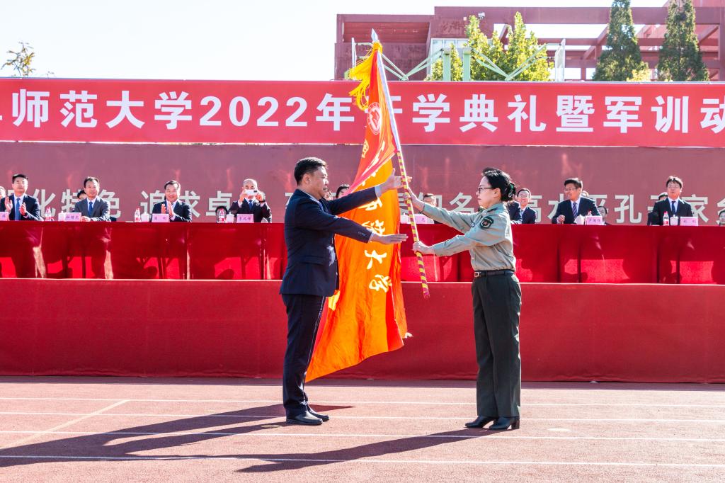 党委书记邢光在曲阜校区为军训旅授旗