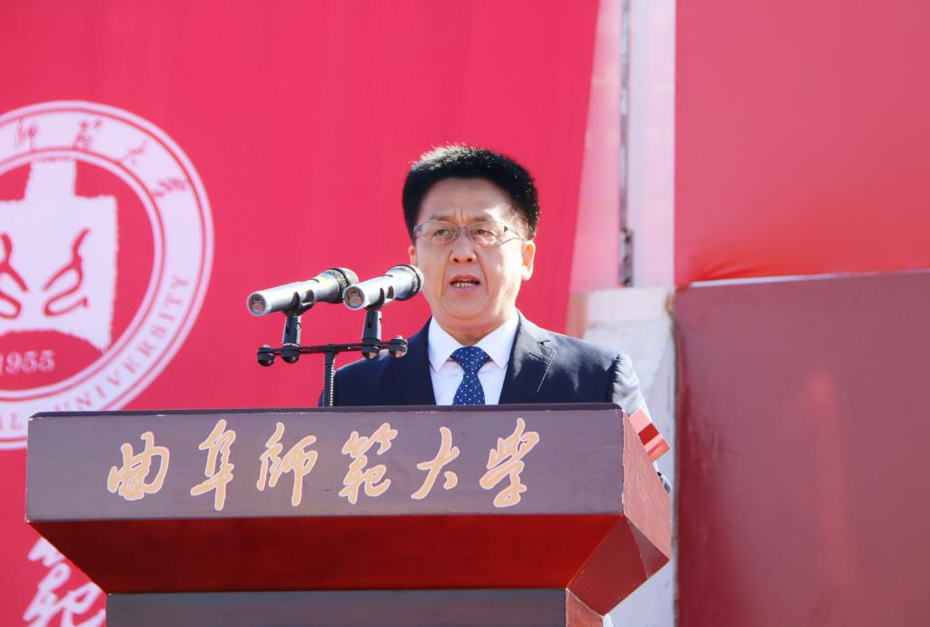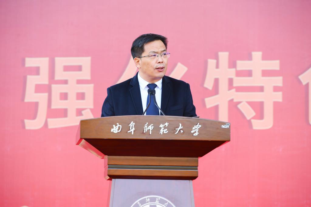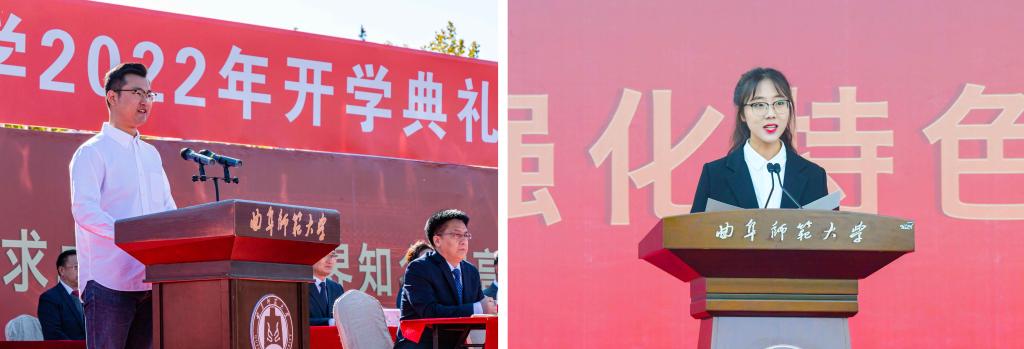 “希望大家带着求知欲和探索心,学到过硬的真本领。”物理工程学院刘晓兵教授在典礼上发言,和同学们分享了自己从美国西北大学来到曲阜师大工作五年以来的体会,希望同学们发扬曲园的淳厚学风,做爱国明志、不甘人后的曲园人,做勇于奋斗、百折不挠的新青年,做精神丰满、体魄强健的追梦人。