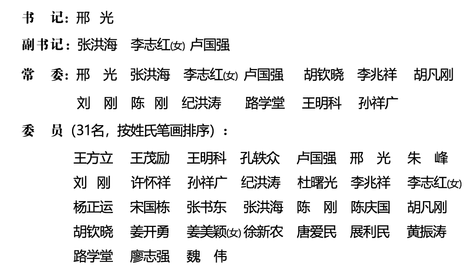 中共od(中国)官方网站第九届委员会书记、副书记、常委、委员