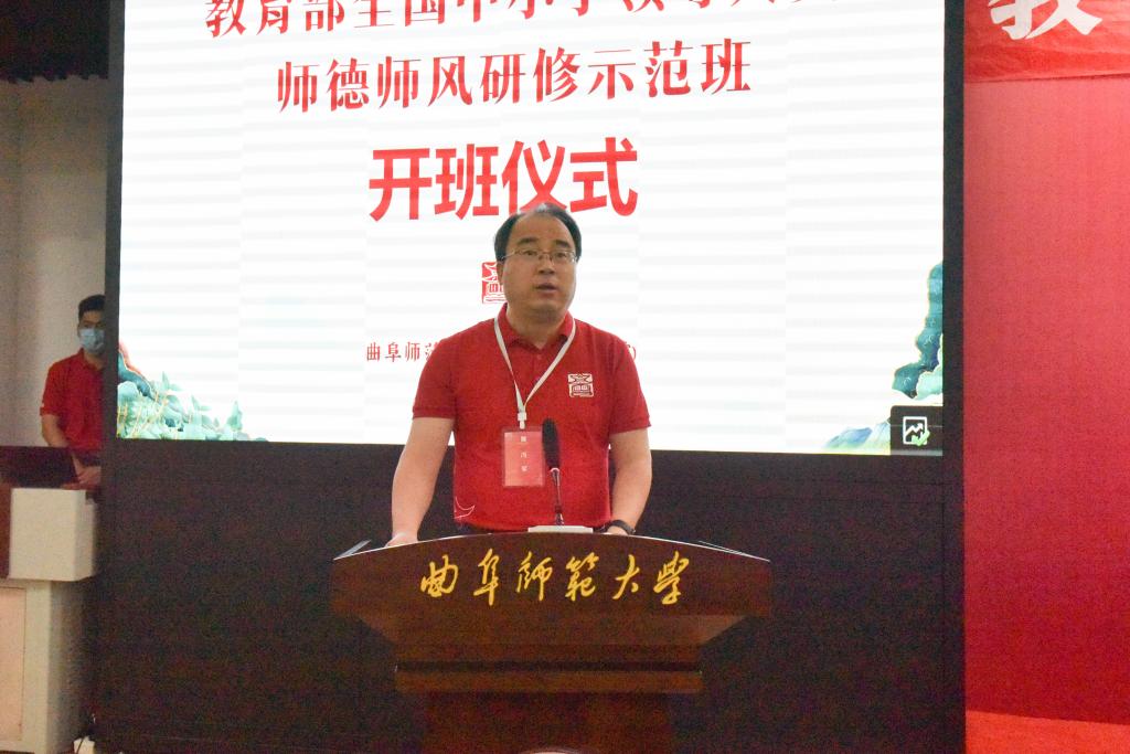 曲阜师大新闻中心讯 (记者:孙红梅 摄影:刘萌 董少伟)根据教育部教师工作司统一部署,8月16日,全国中小学领导人员师德师风研修示范班在od(中国)官方网站开班。来自全国各省市中小学100余位党组织书记和校长参加研修。教育部教师工作司二级巡视员陈武、山东省教育厅副厅长孙晓筠,教师工作司教师管理与师德建设处干部张冠林、山东省教育厅教师工作处副处长刘依林,曲阜师大党委副书记、校长张洪海,党委常委、副校长李兆祥及国家级师德教育基地办公室负责人出席开班仪式。开班仪式由李兆祥主持。