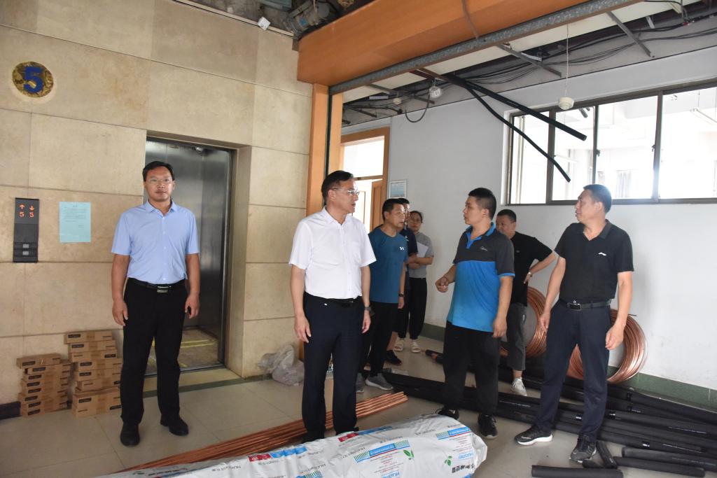 曲阜师大新闻中心讯(记者:刘萌) 7月29日上午,党委常委、副校长陈刚先后来到学校宿舍楼、教学楼等地实地检查校园改造维修情况,了解暑假维修项目的进展。后勤管理处负责人一同参加了活动。