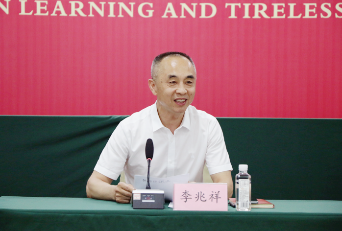 李兆祥在讲话中向顺利完成学业的毕业生们表示祝贺,对他们即将开启新的人生旅程表示祝福。他通过分享自己读《孝经》的感悟,对毕业生们提出三点期望:一是希望毕业生们能够以“立身”为基石,在家庭中要感恩父母,敬养父母;踏入社会后要仁民爱物,推己及人,普爱天下之人;要有深厚的家国情怀,砥砺前行,报效国家。二是要做到金石可镂、滴水成河的“聚而不散”,社会实践要深,本职专业要精。三是坚持终身学习,与知识为友。希望同学们无论今后工作如何繁忙,压力如何巨大,岗位和环境如何改变,都要勤奋学习,做到无一事而不学、无一时而不学、无一处而不学。