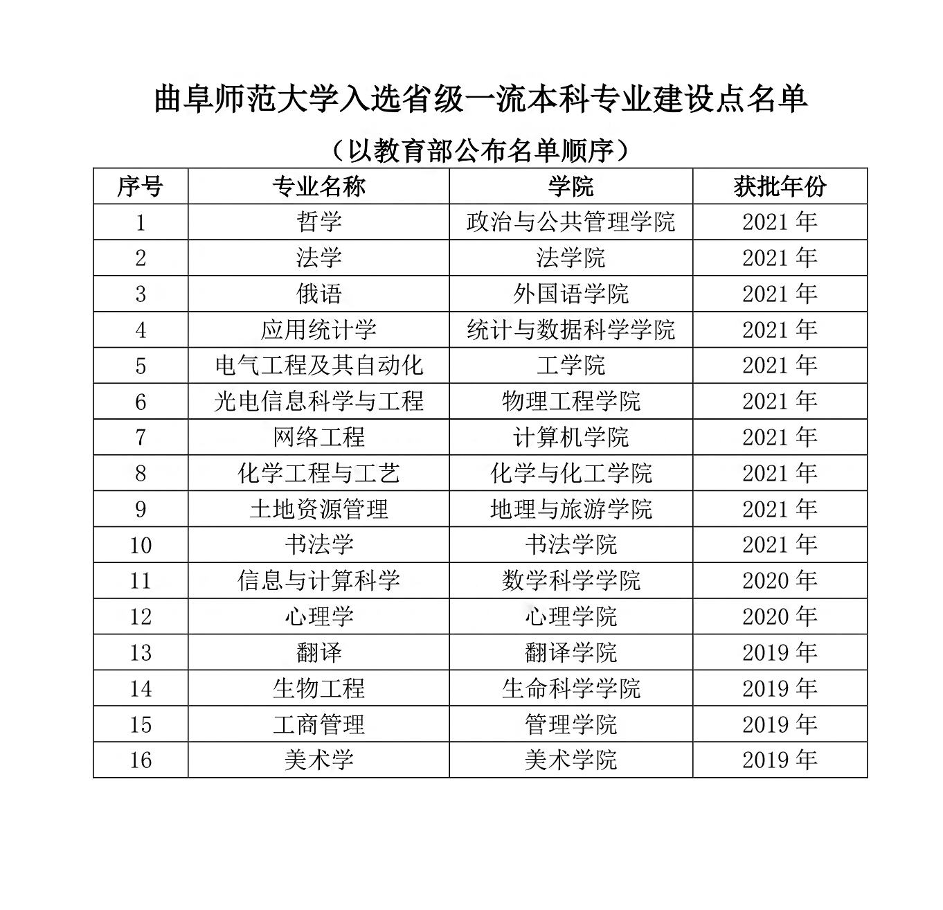 曲阜师大新闻中心讯(通讯员:孙新慧)近日,教育部办公厅下发《教育部办公厅关于公布2021年度国家级和省级一流本科专业建设点名单的通知》(教高厅函〔2022〕14号),公布了2021年度国家级和省级一流本科专业建设点名单,我校经济学等10个专业被认定国家级一流本科专业建设点,哲学等10个专业被认定省级一流本科专业建设点,其中国家级一流本科专业建设点认定数量位居省属高校第二位。