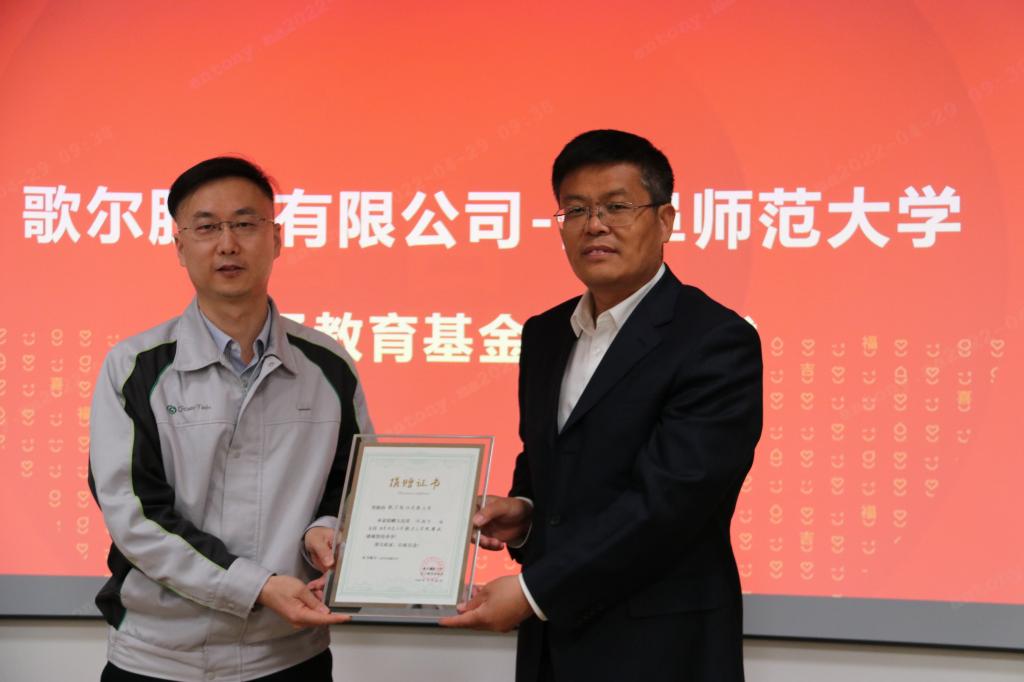 曲阜师大新闻中心讯(通讯员:尹哲睿)4月29日,“歌尔股份有限公司——od(中国)官方网站”孔子教育基金捐赠仪式在歌尔股份有限公司举行。我校党委常委、副校长卢国强、潍坊市教育局产教融合研究院院长田元训、歌尔股份有限公司高级副总裁高晓光出席捐赠仪式并举行交流座谈。我校日照校区办公室、工学院、歌尔工学院等单位负责人参加了活动。