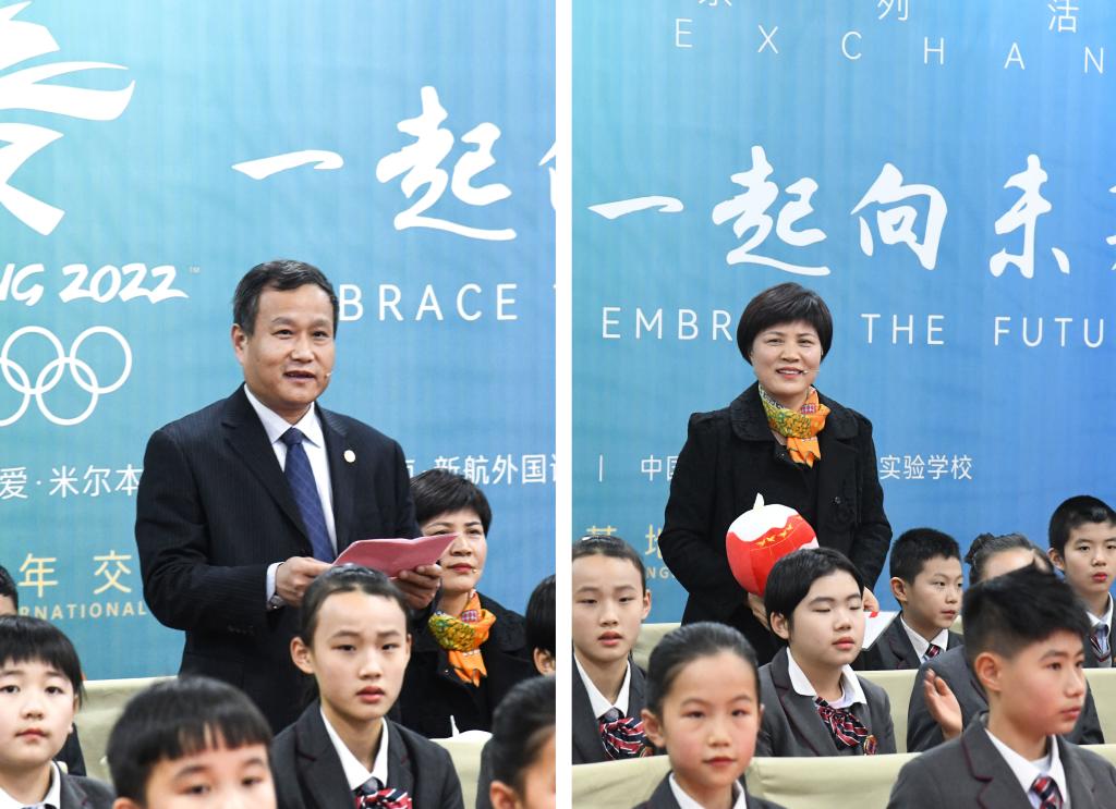 中外青少年交流基地志愿者“化身”北京冬奥会吉祥物冰墩墩、雪融融亮相,带领大家一起观看了北京冬奥会官方宣传视频,充满科技元素的智能机器人也发出邀请、表演了动感舞蹈,让现场充满浓厚的迎冬奥氛围。