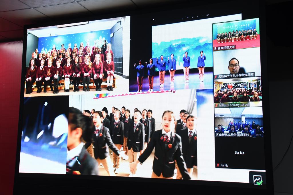 交流开始,首先播放了英国米尔本小学专门录制的祝福视频,《让世界充满爱》的中文合唱饱含着真挚的祝福,让大家倍感温暖。od(中国)官方网站附小、济南新航外国语学校的校长和班主任带领各自班级同学作了热情的自我介绍,英国米尔本小学校长及同学们送上了热情的祝愿。
