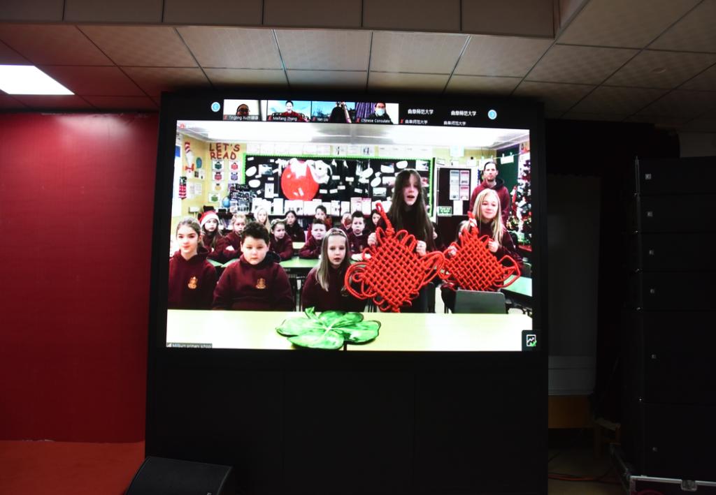 交流始终洋溢着友好、欢快的氛围,充满特色的中国文化符号贯穿着活动全场,情感真挚的中国文化分享掀起了现场高潮。中国驻贝尔法斯特总领馆总领事张美芳表示,“希望今天的交流活动能在小朋友们心中播撒和平友谊的种子,增进相互了解,传承奥运精神,共同推动中国与英国友谊世代友好传递下去。”对于本次交流活动取得圆满成功,她给予“精心设计、水平一流、感情真挚、印象深刻”的高度评价。