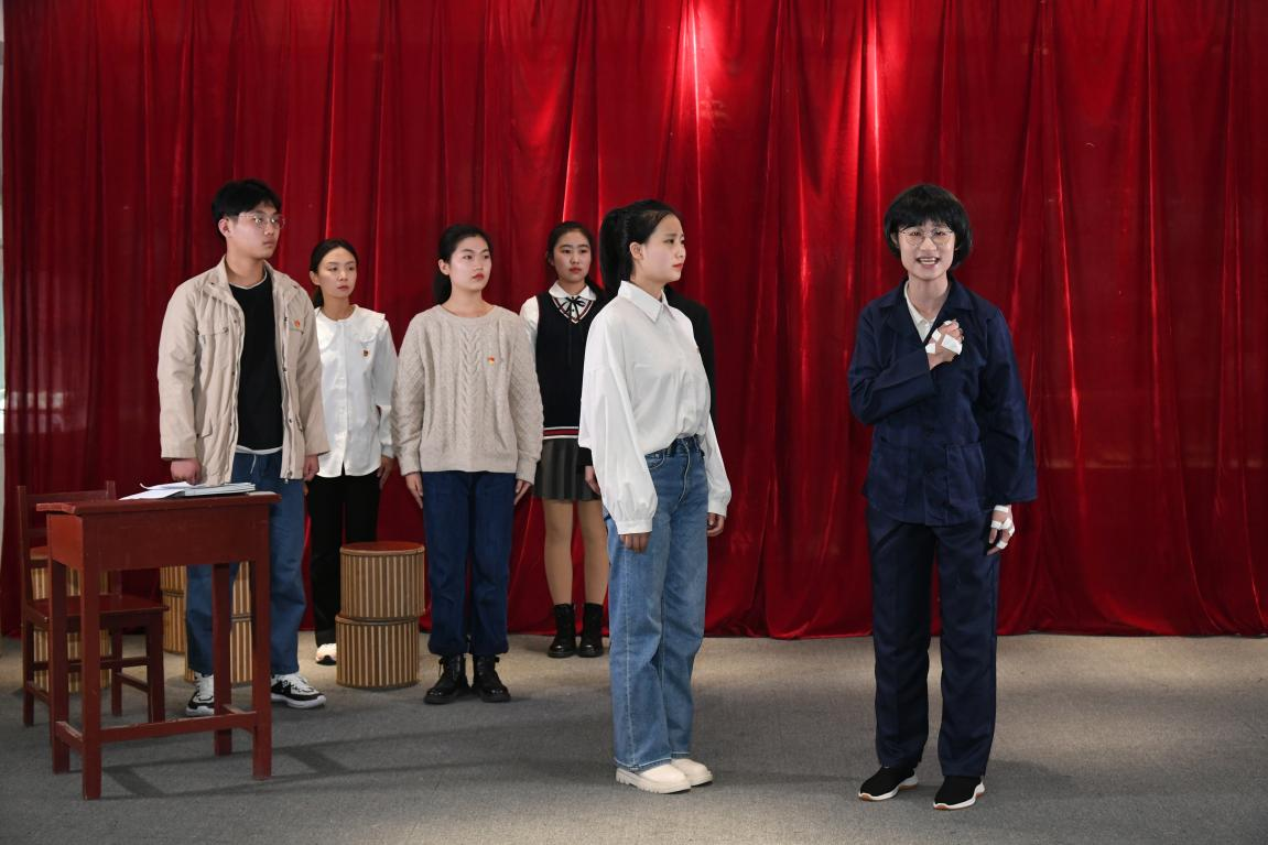 活动现场,宣讲团同学们展演了两个师德教育主题微话剧,再现了张桂梅、黄大年为教育用爱心和智慧点亮万千乡村女孩的人生梦想,不忘初心,至诚报国的感人事迹,令现场师生为之动容。