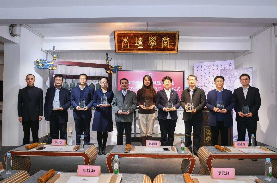 学校党委常委、宣传部部长张隆海为宣讲团同学颁发证书并授旗。