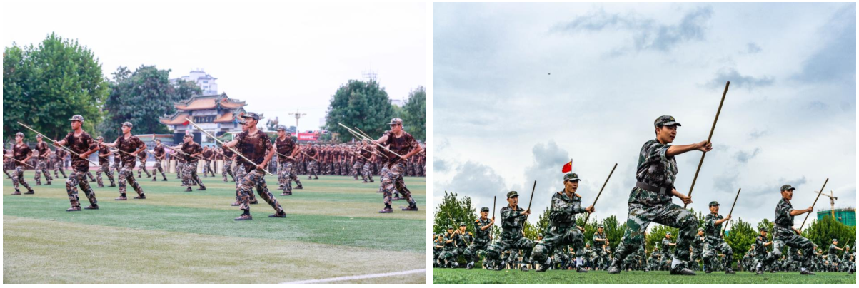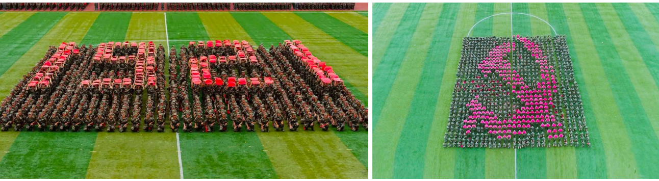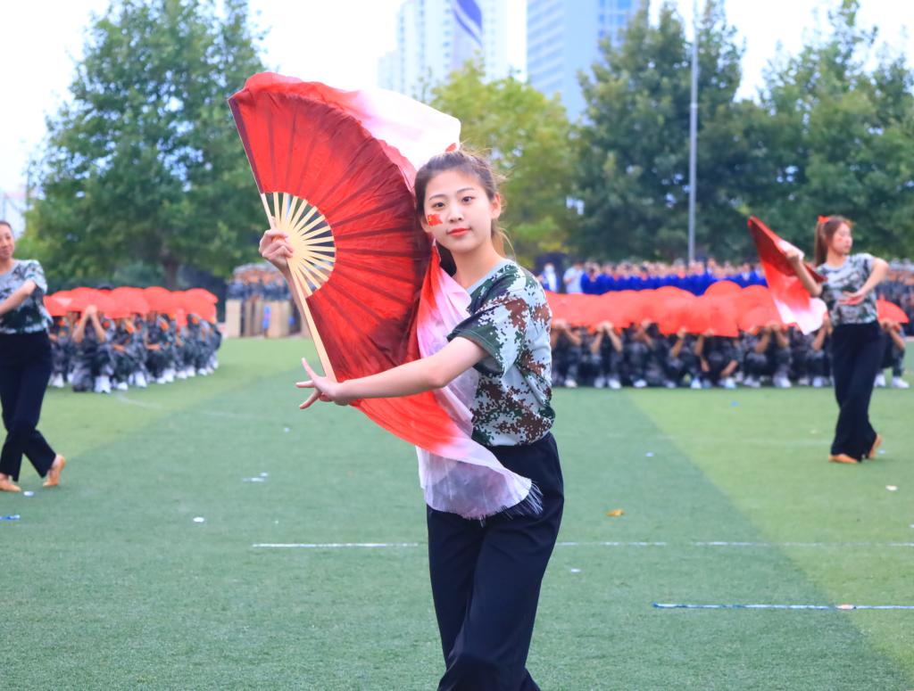 大会在全体师生齐唱国歌中拉开帷幕。在随后的军训汇报表演中,曲园学子们精神抖擞、意气风发,队列方阵动作整齐、军姿飒爽,擒敌拳方阵招式凌厉、气势强劲,内务方阵井然有序、一丝不苟,棍术方阵铿锵有力、势如破竹,旗语方阵干净利落、整齐划一,定向越野方阵步履矫健、配合默契,心理健康操方阵在优美舞姿中绽放青春风采、表达美好祝福,军训教官组成的战地救护和格斗方阵尽显无畏精神与英雄气概,获得阵阵掌声和欢呼。汇演过程中,参训同学还通过队列阵型摆出了“1921—2021”“百年初心,牢记使命”“请党放心,强国有我”“我爱曲园”等字样,表达出热烈的爱党爱国、爱校荣校之情。