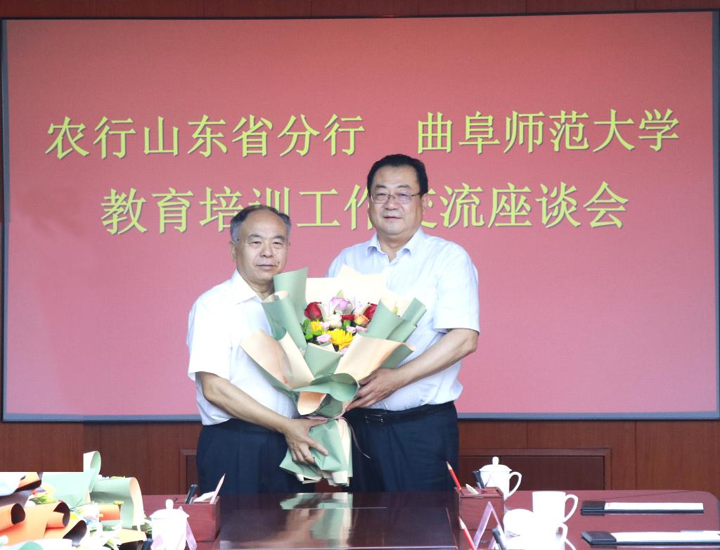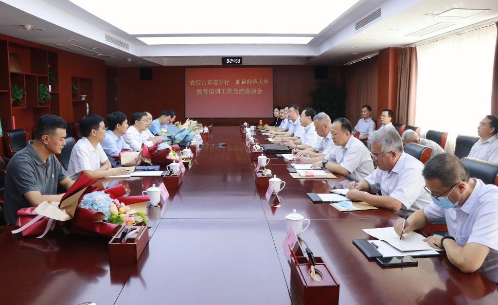 曲阜师大新闻中心讯(记者:李文振 孙琪) 9月10日,中国农业银行山东省分行党委委员、副行长付晓一行来曲阜师大举行教育培训工作交流座谈会,校长张洪海、副校长胡钦晓会见来宾并举行座谈交流。学校财务处、优秀传统文化教育中心、网络信息中心、学生工作处相关负责人参加座谈。