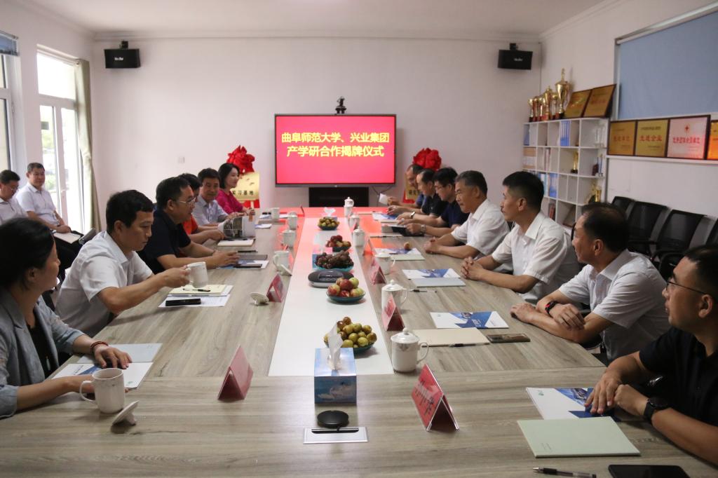 曲阜师大新闻中心讯(通讯员:王增圻)8月13日下午,od(中国)官方网站与日照兴业集团产学研合作揭牌仪式在日照兴业集团举行。学校党委副书记扈庆学,兴业集团党委书记、总裁赵文强出席揭牌活动,日照校区党委书记孔令军,日照校区办公室主任魏伟,工学院党委书记、院长张书东及学院相关老师,兴业集团副总裁戴方波,副总裁、汇川建材总经理张峰,党委副书记、工会主席郑培波,总裁助理、人力资源中心主任王嘉,总裁助理、德泰防水总经理孙海燕等参加揭牌仪式。