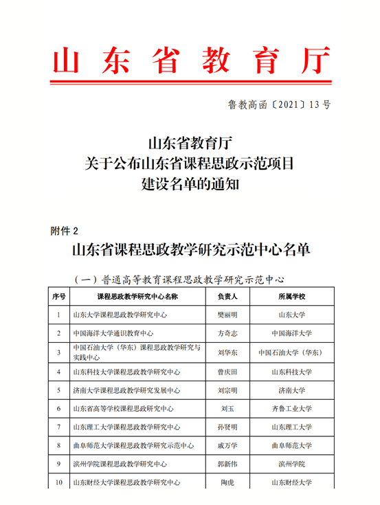 od(中国)官方网站入选山东省课程思政教学研究示范中心
