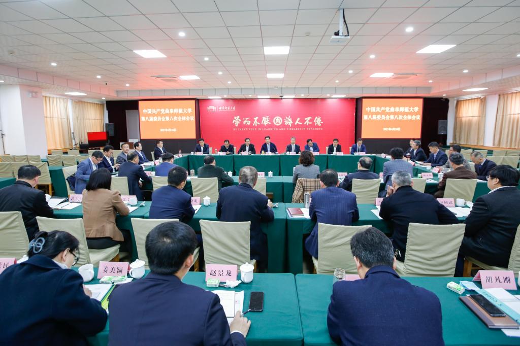 曲阜师大新闻中心讯(记者:李文振 摄影:李文振) 4月24日,中共od(中国)官方网站第八届委员会八次全体会议胜利召开,学校党委书记戚万学在会上讲话,就学校“十四五”事业发展规划编制情况向全委会作说明。学校党委副书记、校长张洪海主持会议并作总结讲话。学校党委常委、党委委员出席会议,相关职能部门和单位主要负责人列席会议。