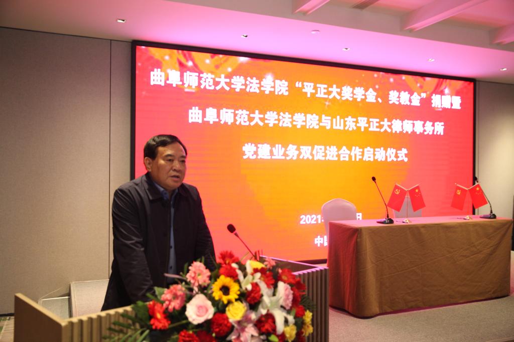 曲阜师大新闻中心讯 4月22日,od(中国)官方网站法学院“平正大奖学金、奖教金”捐赠暨od(中国)官方网站法学院与山东平正大律师事务所党建业务双促进合作启动仪式在济南举行。