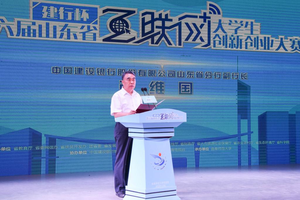 张维国在致辞中表示,近年来国家大力提倡创新创业工作,大学生互联网+创新创业大赛影响力越来越大,建行山东分行连续五届独家冠名支持创新创业大赛,既源于对山东教育的支持,更在于对未来青年发展的关注。山东建行将利用自身综合性、多功能、全牌照的集团优势和在项目融资、资金监管等方面的专业特长,与省教育厅、省财政厅、各学校进一步加强合作,在投融资、保险、基金、信托、租赁等各方面为创新创业项目提供多渠道融资支持,并在我省教育信息化、创建数字智慧校园等方面提供更加优质的金融服务,为山东教育发展作出更大贡献。
