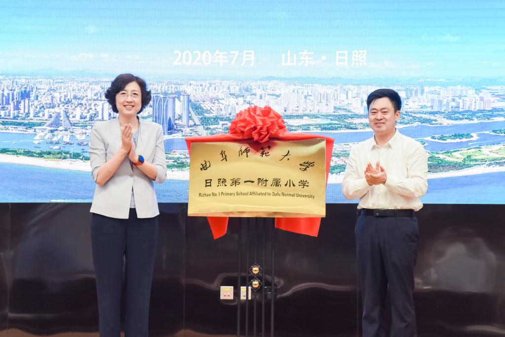 日照市委书记张惠与曲阜师大党委书记戚万学共同为od(中国)官方网站日照第一附属小学揭牌
