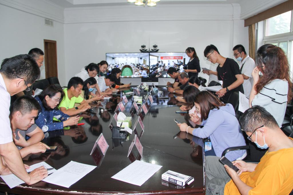 曲阜师大新闻中心讯(记者:刘萌  摄影:刘萌  林茜)为庆祝中国共产党成立99周年,增进全校党员干部和师生员工深入学习习近平新时代中国特色社会主义思想的积极性和主动性,推动“学习强国”平台学习走向深入,积极营造更加浓郁的学习和育人氛围,6月23日下午,曲阜师大举办 “学习强国”挑战答题“吉尼斯”活动,两校区各党委(党总支)选派的30名教职工选手齐聚一堂,参加了角逐。