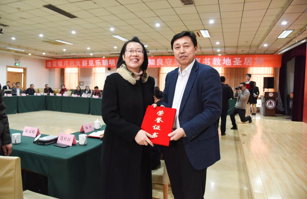 莫道桑榆晚,为霞尚满天。2020年1月8日,我校隆重举行2019年教职工荣休典礼暨从教三十年教师表彰大会。学校党委书记戚万学、校长张洪海出席典礼,荣休教职工代表、从教30年教师代表、相关职能部门负责人、荣休教职工单位负责人以及在职教师代表、学生代表参加了典礼。典礼由副校长王继锁主持。戚万学、张洪海在仪式上分别为荣休教职工、从教30年教师颁发荣誉证书及纪念牌。
