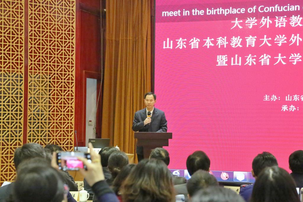在为期一天的会议日程中,刘建达教授做了题为“新时代大学外语教学的挑战与变革”的主题报告。结合教育部《大学英语教学指南》,刘建达教授从中国外语教育新时代讲起,在大学外语教学内容、教学方法、考评制度以及教师发展等方面提出了新的见解和主张。对于大数据下的金课建设、自主学习做了精辟阐述。崔校平教授在“努力建设一流课程,落实立德树人根本任务”的专题报告中指出,建设大学外语一流课程,加强外语思政课程建设,全面提升人才培养能力是大学外语教育做好立德树人的根本要求。主报告后,来自省内的九位专家分别从大学外语课程建设、教学模式、教师发展、学生需求、课堂活动等方面做了精彩的学术交流。最后,山东省本科教育大学外语教学指导委员会委员和山东省大学外语教育专业委员会会长、副会长及常务理事举行会议,就下一步山东省大学外语发展进行了进一步探讨。