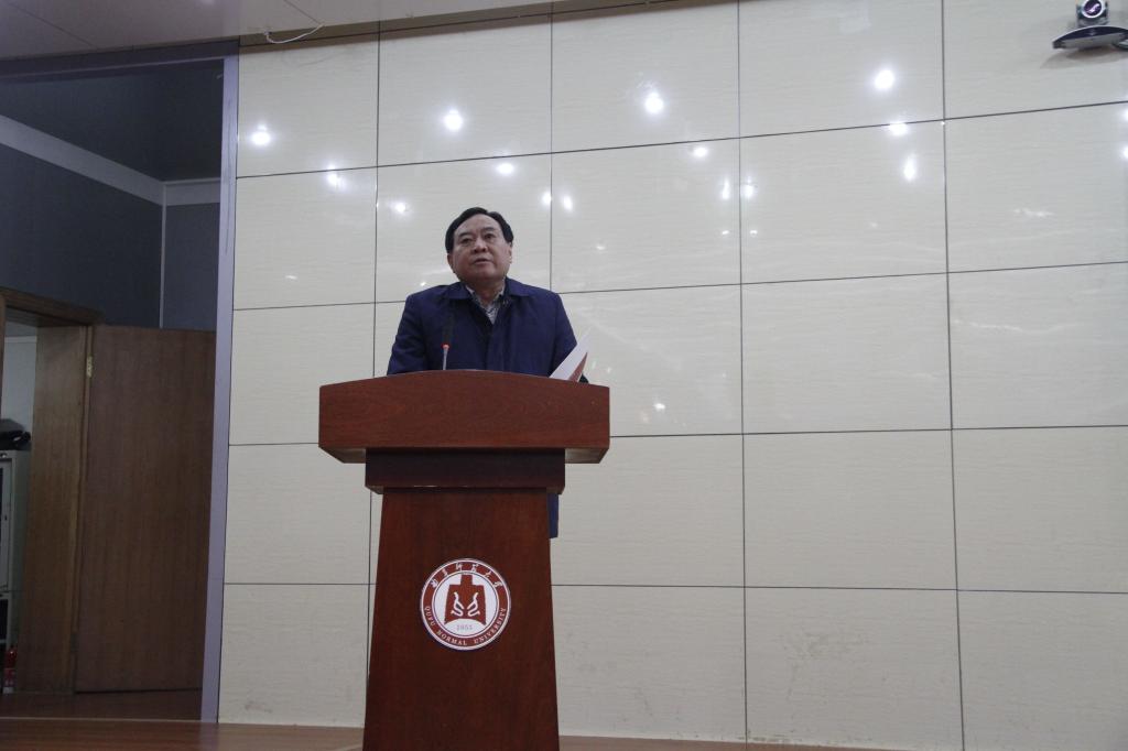 副校长冯冲宣读“关于表彰2018年度科研工作先进单位、优秀科研工作者及科研管理先进个人的决定”