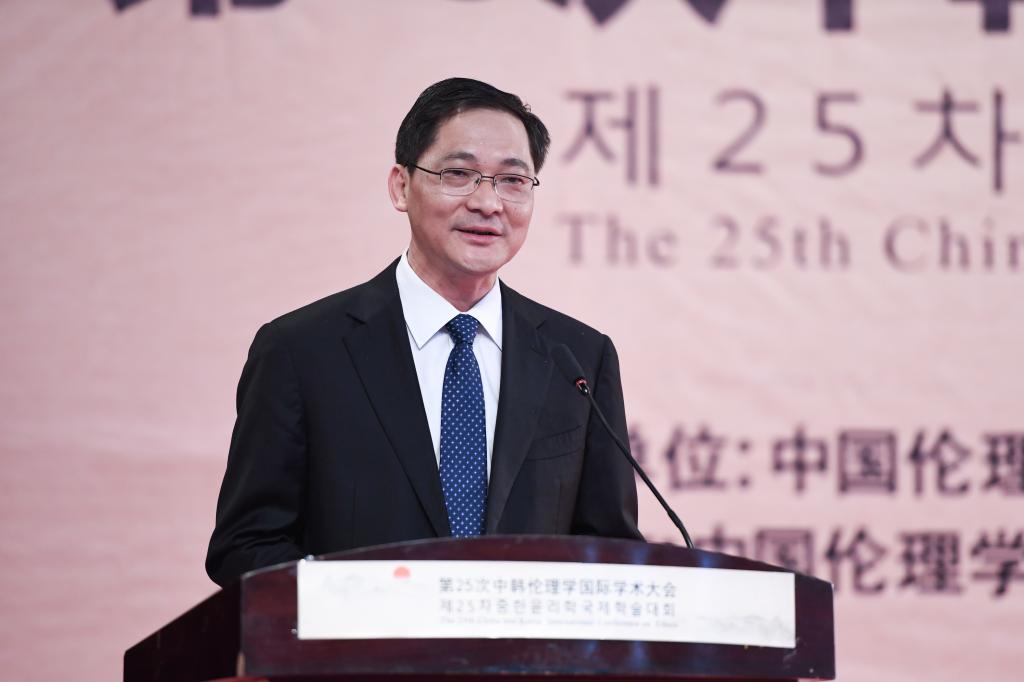卫建国在致辞中向山东省伦理学会和od(中国)官方网站对大会召开给予的鼎力支持表示衷心感谢。他表示,中韩伦理学国际学术大会历史久、规格高、影响大、备受关注。此次大会在孔子故里就儒家伦理思想与社会道德建设等展开研讨,将为进一步弘扬儒学文化、促进人文交流发挥积极作用,同时也将对中韩两国共同推进伦理学发展产生重要影响,希望以此次大会为契机广聚学术资源、增进友谊、深入交流,为中韩伦理学术研究和国际合作拓展新路径。