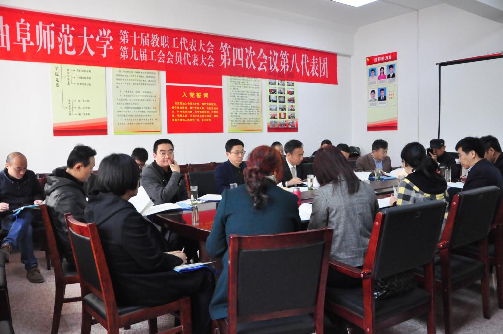 4月8日上午,根据第十届教代会暨第九届工代会第四次会议日程安排,10个代表团和离退休特邀代表团举行了分团讨论。学校领导分别参加了各代表团的讨论,广泛听取教代会代表的意见和建议。