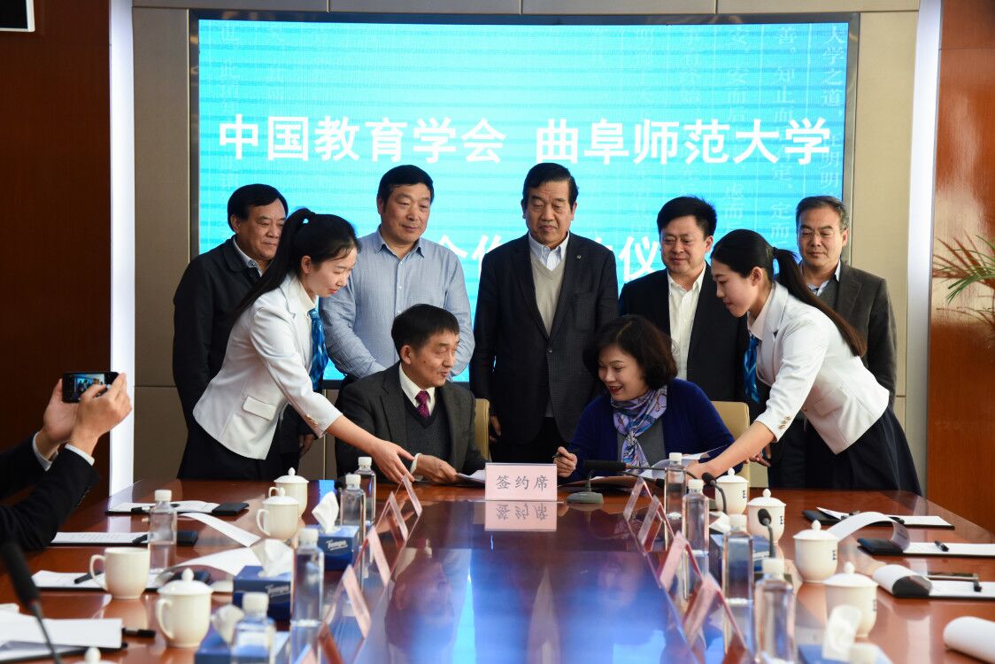 为深入贯彻党的十九大精神,传承弘扬中华优秀传统文化,进一步推动书法教育创新发展,3月21日下午,我校与中国教育学会就中小学书法教师培训签订战略合作协议。中国书法家协会主席、中国教育学会书法教育专业委员会筹委会主任苏士澍,中国教育学会副会长杨念鲁,我校党委书记戚万学、副校长王继锁、副校长冯冲,中国书法家协会副主席、我校特聘教授毛国典出席签约仪式。签约仪式由冯冲主持。