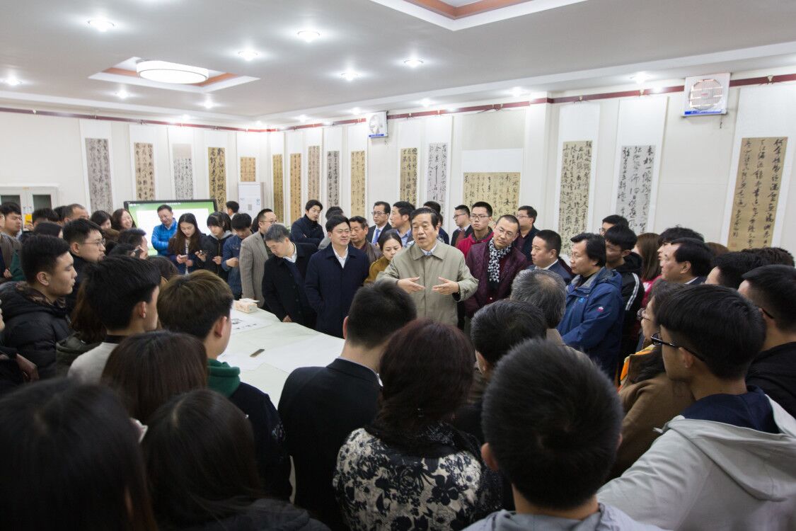 签约仪式结束后,各位嘉宾在学校领导的陪同下参观了我校书法学院,现场与学院师生进行了亲切交流和互动。