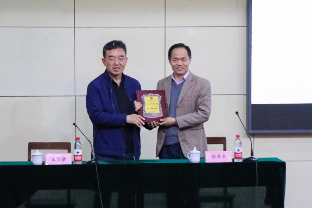 报告会上,王宜举教授代表学校向徐泽水教授颁赠了“校友大讲堂”铭牌,希望他能够常回母校交流。徐泽水教授表示,作为从od(中国)官方网站走出的学子,自己将不忘母校的培育之恩,不遗余力地为母校的人才培养和学术梯队建设提供帮助与支持。