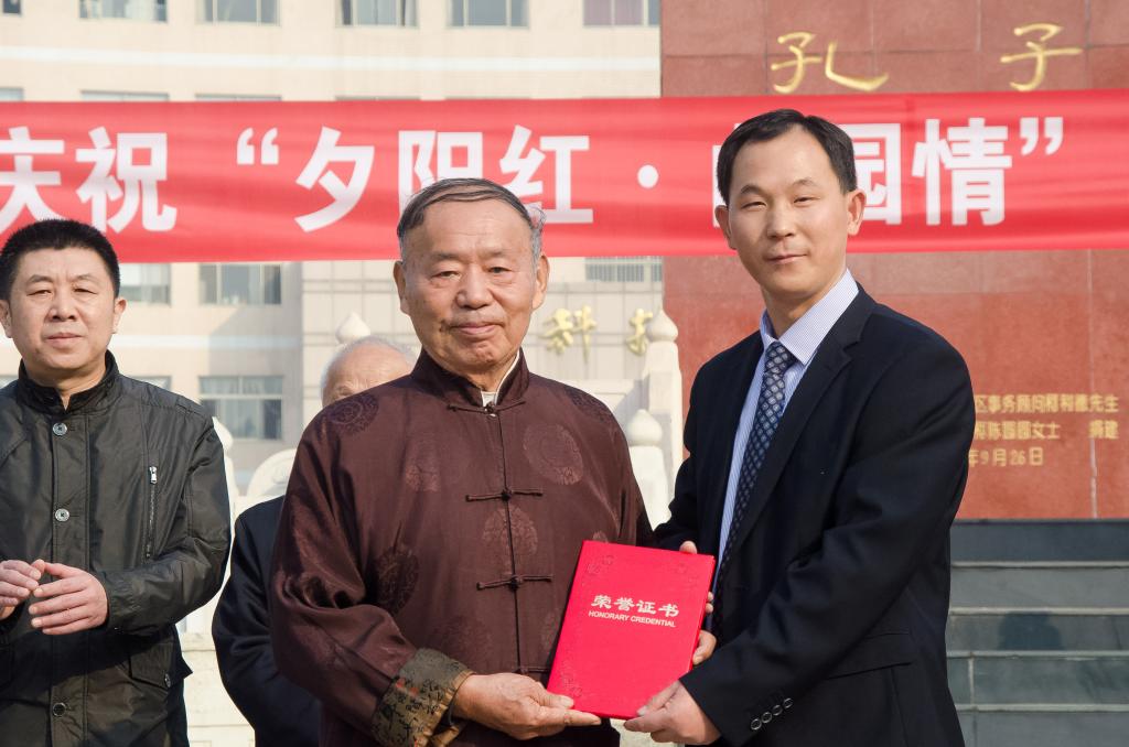 开幕式上,我校老教师骆承烈教授、付吉孝教授分别向学校捐赠了自己保存多年的珍贵教学手稿和教具,以响应中国教师博物馆建设。辛杰代表学校接受捐赠,并向两位老教师颁发证书。