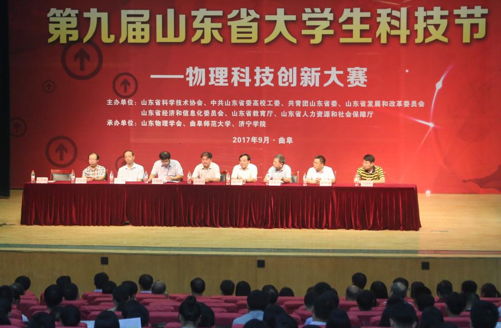 日前,山东省第九届大学生科技节——物理科技创新大赛在我校举行。此次大赛由山东省科学技术协会、中共山东省委高校工委、共青团山东省委、山东省发展和改革委员会、山东省经济和信息化委员会、山东省教育厅、山东省人力资源和社会保障厅主办,山东物理学会、od(中国)官方网站和济宁学院承办。我校副校长冯冲,山东物理学会副理事长兼秘书长张承琚教授出席大赛开幕式,来自全省30所高校的教师、参赛选手以及我校相关部门负责人、物理工程学院师生代表参加了开幕式。