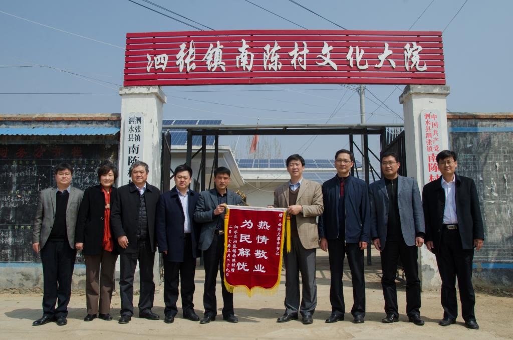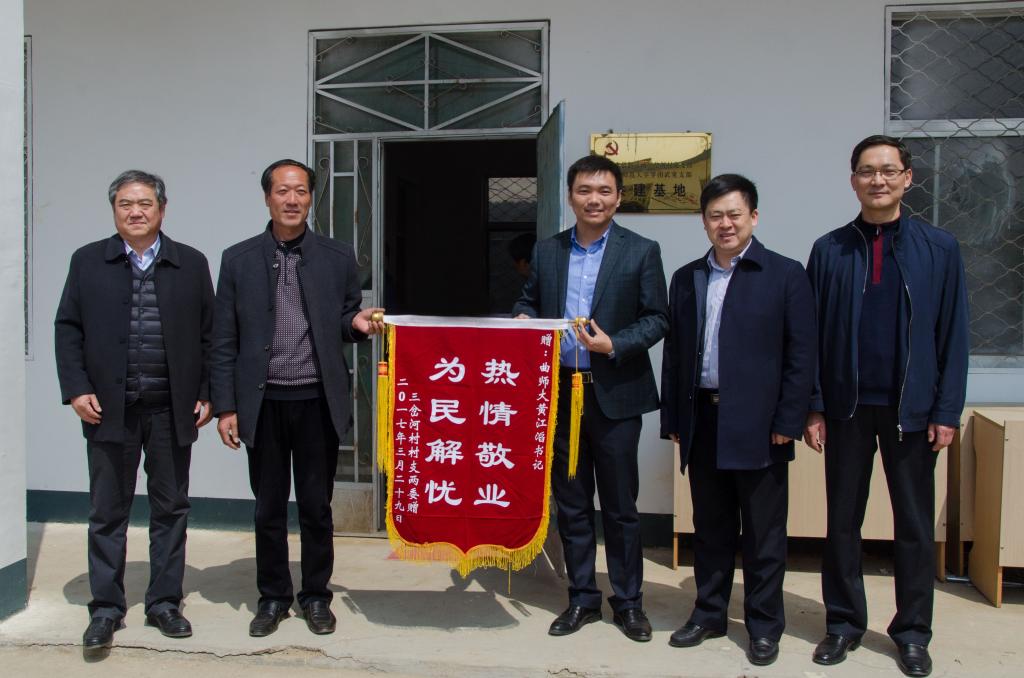 3月29日,我校第二轮省派第一书记任职期满,学校党委书记戚万学、党委副书记马东骅、副校长夏云杰赶赴泗水县泗张镇石门村、南陈村、三岔河村,迎接刘建新、季中、黄江滔三位第一书记载誉而归,泗水县县委书记谢成海与当地干部群众一起欢送三位第一书记返校。