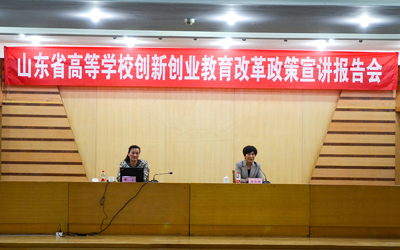 10月25日下午,山东省高等学校创新创业教育改革政策系列宣讲活动在我校举行。山东省学生就业创业教育咨询中心主任李霞做宣讲报告,副校长康淑敏主持了此次宣讲活动。鲁西、鲁南地区13所高校创新创业教育改革领导小组成员,我校相关单位负责人,各学院副书记、辅导员以及部分学生参加了报告会。