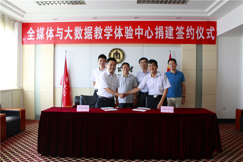曲师大副校长王继锁、山东中教科技有限公司总经理韩伟分别代表受捐方、捐赠方签约。中国教育大数据研究院首席专家谭维智等有关负责人参加仪式。