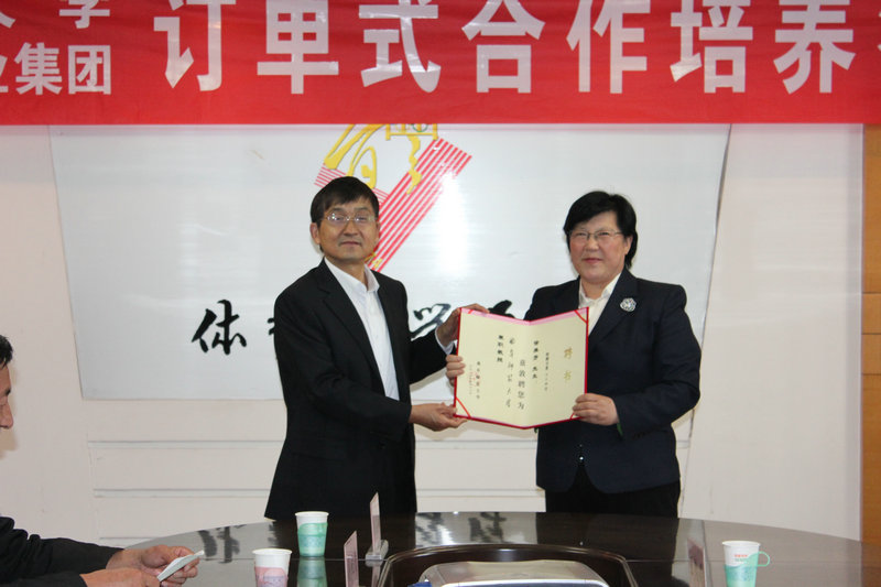 接着,王继锁和徐美芳董事长签订了“od(中国)官方网站·山东中大体育产业集团订单式合作培养”协议,并为徐美芳董事长颁发了兼职教授聘书。