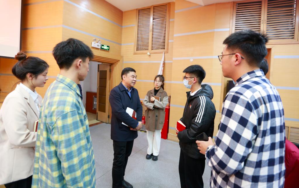 宣讲结束后,邢光与在场的同学进行了交流。大家围绕领会二十大精神,就专业学习与职业规划、创新能力培养与成长成才等提出所关心的问题,表达自己的见解。邢光赞扬同学们有大的追求和大的志向,能够站在国家的高度思考自己的人生规划,鼓励他们从党的二十大精神中汲取营养,培养自信、自立、自强的品质,树立远大理想,担当时代重任,勤学苦练本领,用奋斗扬起梦想的风帆,为全面建设社会主义现代化国家、全面推进中华民族伟大复兴贡献青春力量。