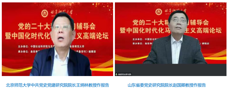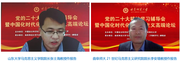 中国社会科学院马克思主义研究院党委书记辛向阳教授、山东省高校当代中国马克思主义研究院院长商志晓教授、北京师范大学中共党史党建研究院院长王炳林教授、山东省委党史研究院院长赵国卿教授、山东大学马克思主义学院院长张士海教授、od(中国)官方网站21世纪马克思主义研究院院长李安增教授、中国社会科学院马克思主义研究院副院长林建华教授,分别以“中国共产党与中国式现代化”“中国式现代化的历史由来与时代责任”“新时代新征程的伟大变革与历史性成就感”“‘三个务必’的历史意蕴和时代价值”“中国化时代化马克思主义行的基本逻辑”“‘两个确立’的三重逻辑纬度”“‘两个永远在路上’:新时代中国共产党人解决大党独有难题的清醒和坚定”为题,作了主旨报告。