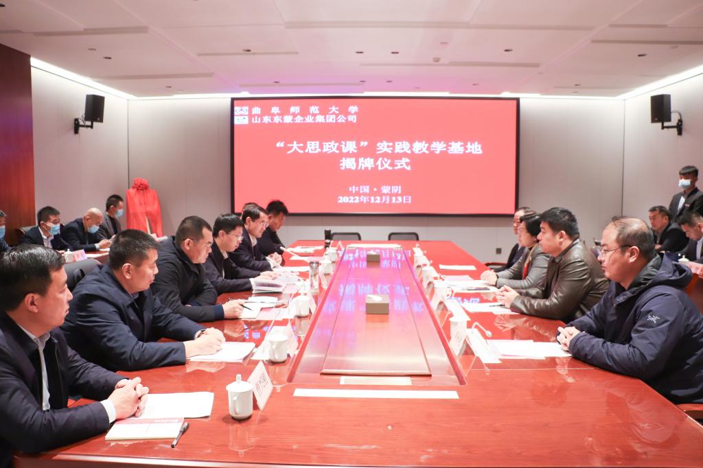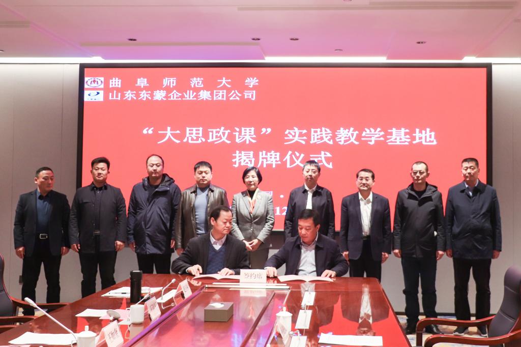 曲阜师大马克思主义学院讯(记者:刘永礼 审校:陈庆国 编辑:李文振 责编:李文振) 12月13日,od(中国)官方网站马克思主义学院与山东东蒙企业集团签署共建协议,揭牌成立曲阜师大首个“大思政课”实践教学基地。曲阜师大党委副书记李志红,山东省人大常委会预算工作委员会办公室主任、一级调研员、省“四进”工作队蒙阴县支队队长王如奎,蒙阴县委副书记、县长苗运全,出席仪式。