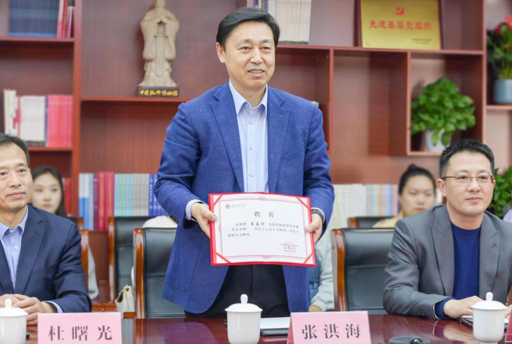 党委副书记、校长张洪海对蔡磊砢教授应邀受聘表示欢迎和感谢,并现场展示了国家师德教育基地“杏坛导师”聘书。党委常委、党委宣传部部长孙祥广主持活动。