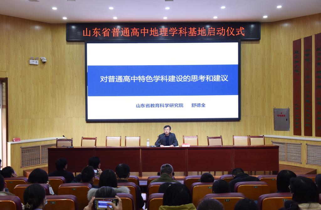 启动仪式后,舒德全作了《对普通高中特色学科建设的思考和建议》专题报告;学科基地首席教师徐伟以《建设学科基地,推进全面育人》为题,对学科基地建设的规划和思路作了汇报交流。