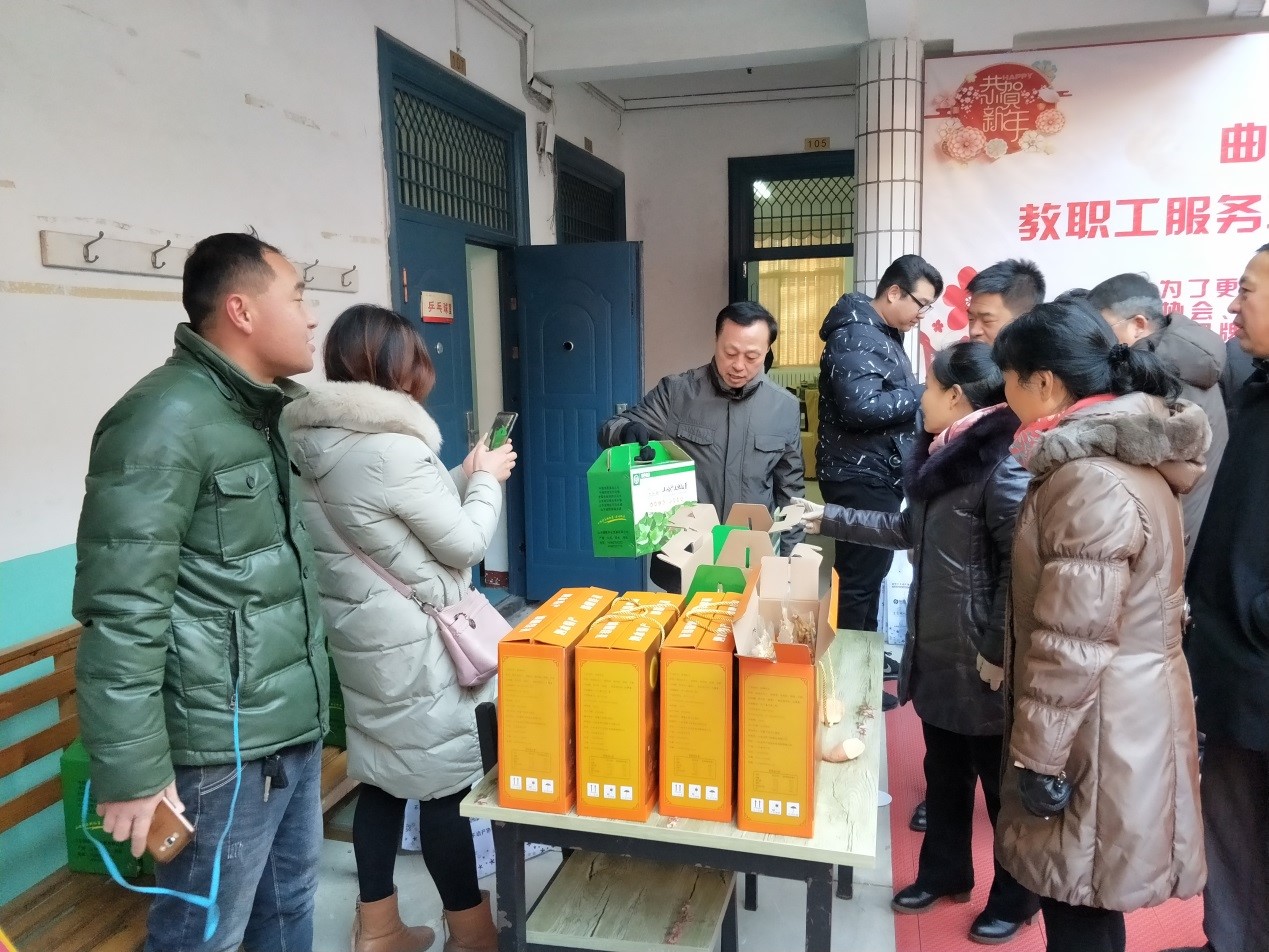 为了更好地多渠道服务全校教职工,本次教职工服务联盟商品展示会联系了银行、不动产、人保寿险、电商、服装、健康养生、旅游等十余类品牌商家,为我校教职工提供现场办公、上门服务。特别是驻泗水圣水峪镇乡村振兴服务队带来泗水县圣水峪镇黄心地瓜、无公害花生米等农产品,价廉物美,成交量达200余箱,受到大家一直好评。