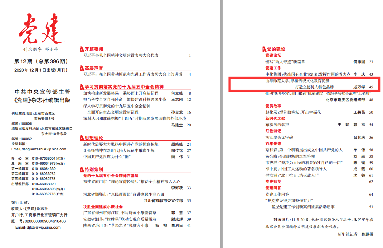 中宣部主管《党建》杂志刊发曲阜师大党委书记戚万学署名文章