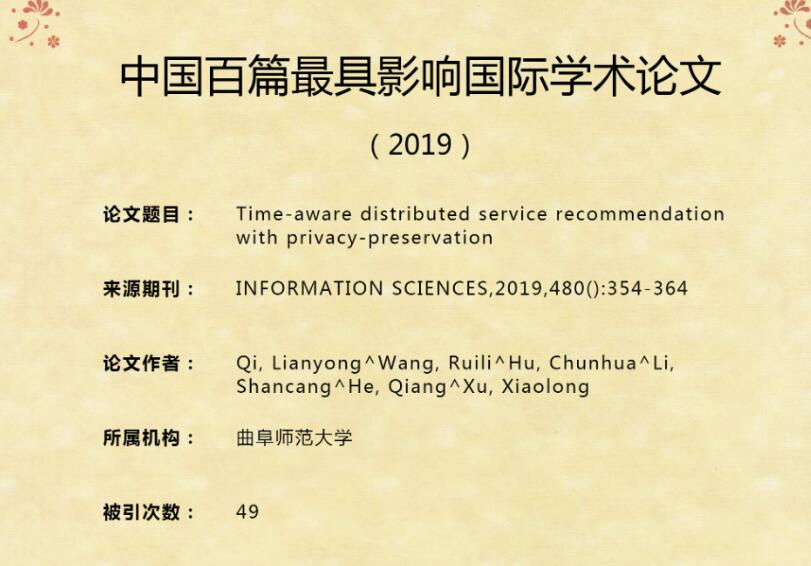 曲阜师大齐连永教授论文入选“中国百篇最具影响国际学术论文”
