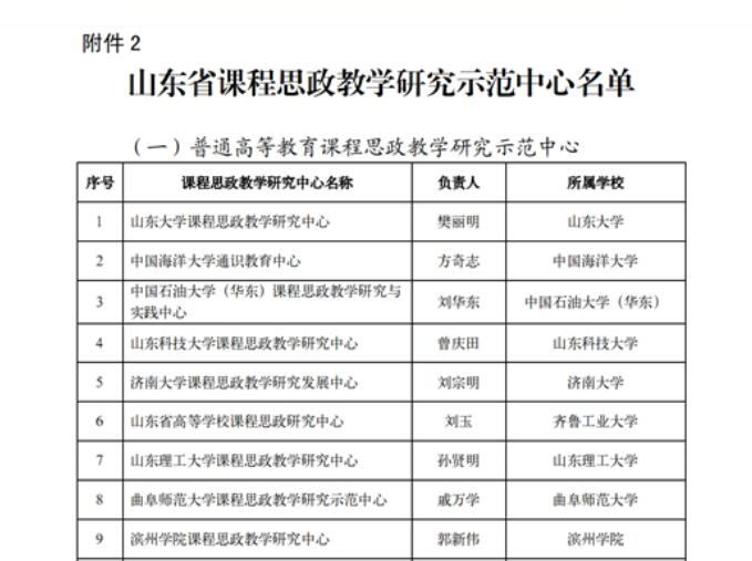od(中国)官方网站入选山东省课程思政教学研究示范中心